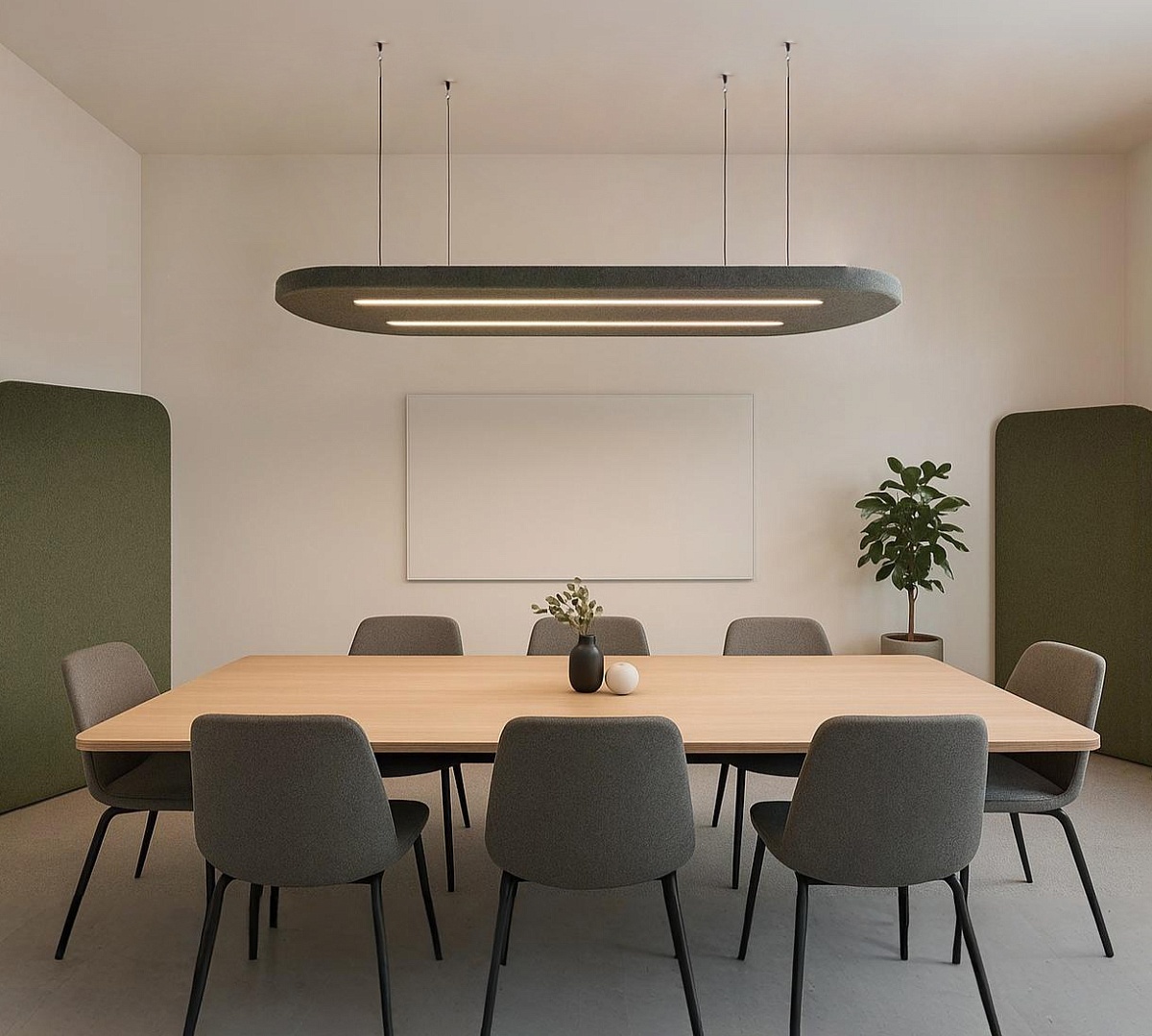 Подвесной светильник MODALINE P37 FELT PANEL сделан на основе двух линейных светильников серии P37 интегрированных в фетровую панель. Панель служит не только декоративным элементом, но и выполняет практическую функцию, равномерно распределяя свет и создавая мягкое, комфортное освещение, которое идеально подходит для жилых и общественных интерьеров, а также способствует дополнительной звукоизоляции, создавая комфортную атмосферу в помещении.