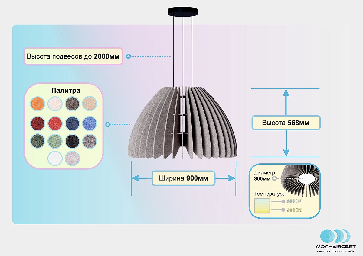 Подвесной светильник MODALINE ROUND BELL90 – это элегантное и функциональное решение для освещения вашего интерьера. Уникальный абажур, собранный вручную из мягких фетровых панелей, создает теплую и приглушенную атмосферу, рассеивая свет мягко и равномерно. Фетр не только приятен на ощупь, но и обладает отличными звукопоглощающими свойствами, что способствует созданию более комфортной акустической среды в помещении.