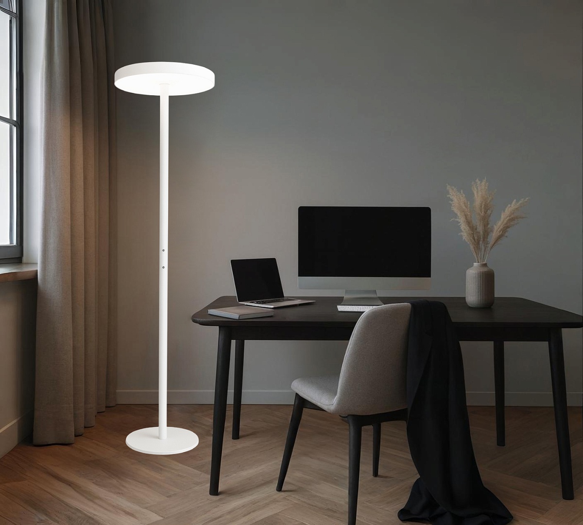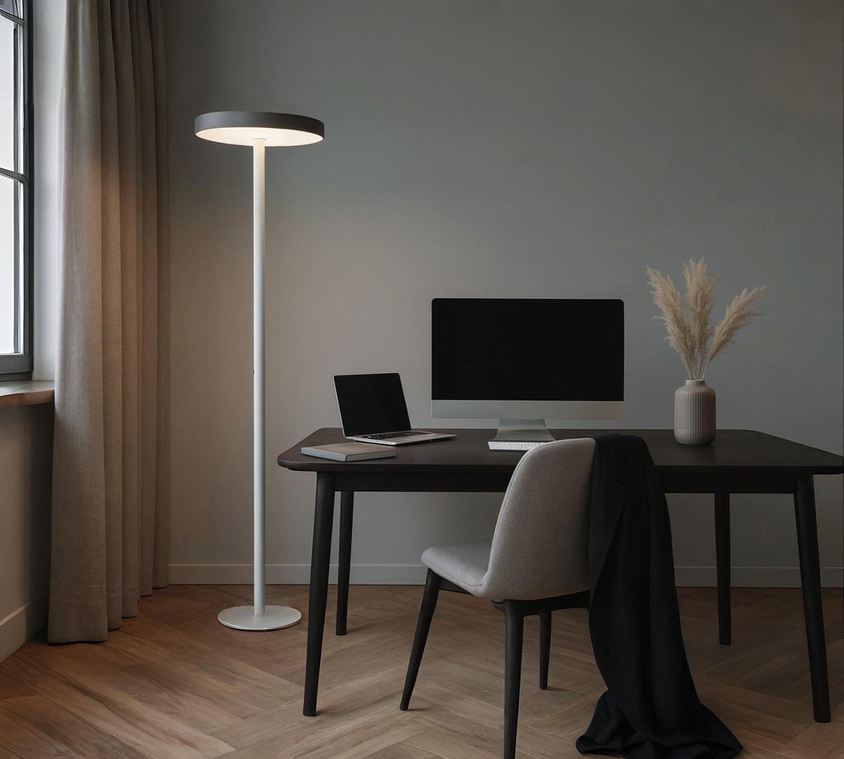 Торшер MODALINE PILLAR ROUND F DUAL с двойным свечением сочетает в себе современность и функциональность, обеспечивая комфортное освещение для любого интерьера.