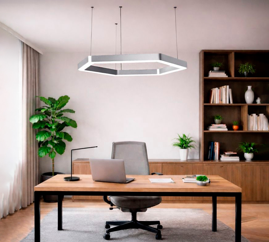 Главная/Каталог/Фигурные светильники/Контурные/Подвесной светильник MODALINE HEXA R120 (1200x1075x70 мм, Серебро царапанное, 4000K)