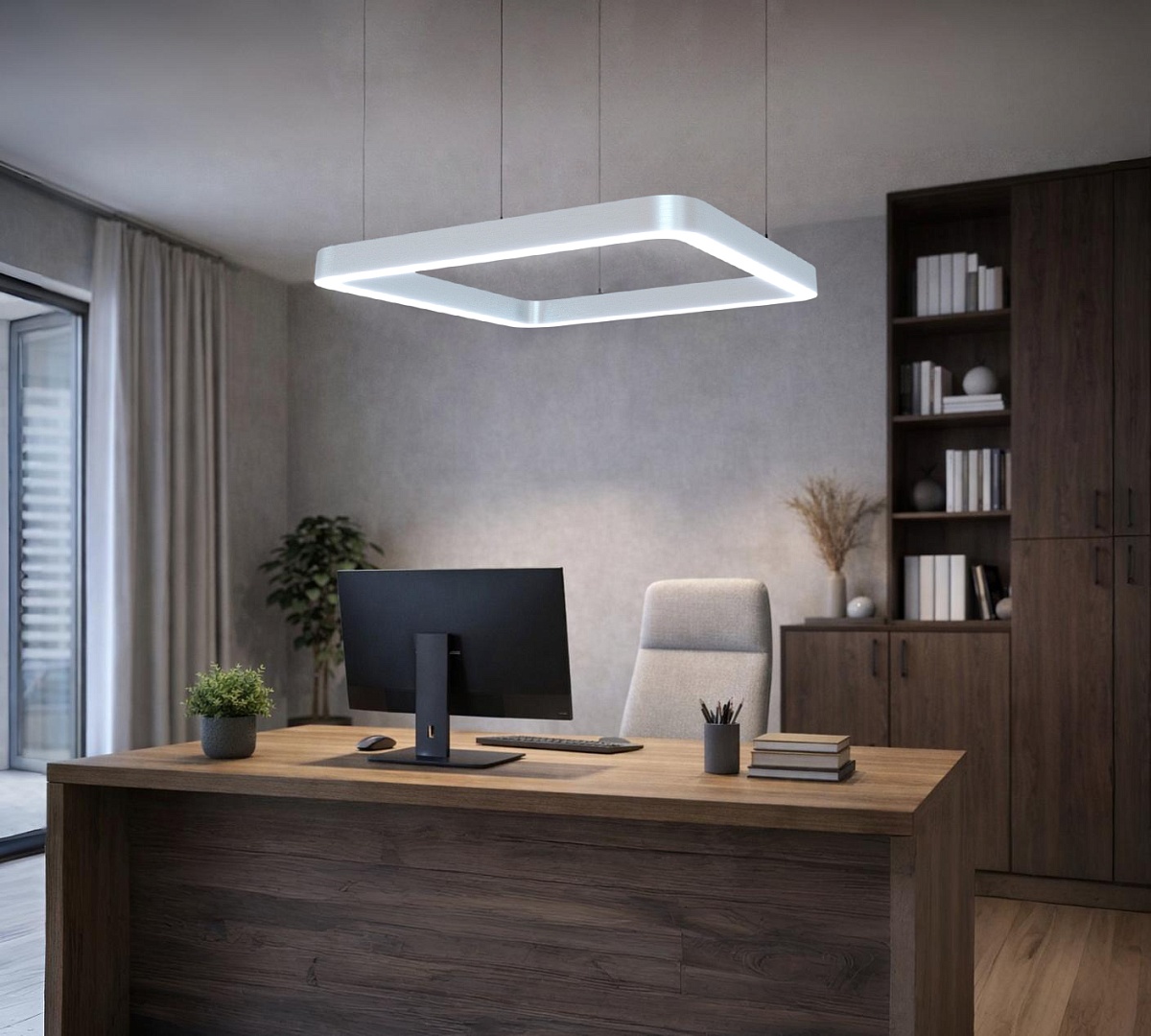 Главная/Каталог/Фигурные светильники/Контурные/Подвесной светильник MODALINE QUAD R75 (750x750x70 мм, Серебро царапанное, 3000K)