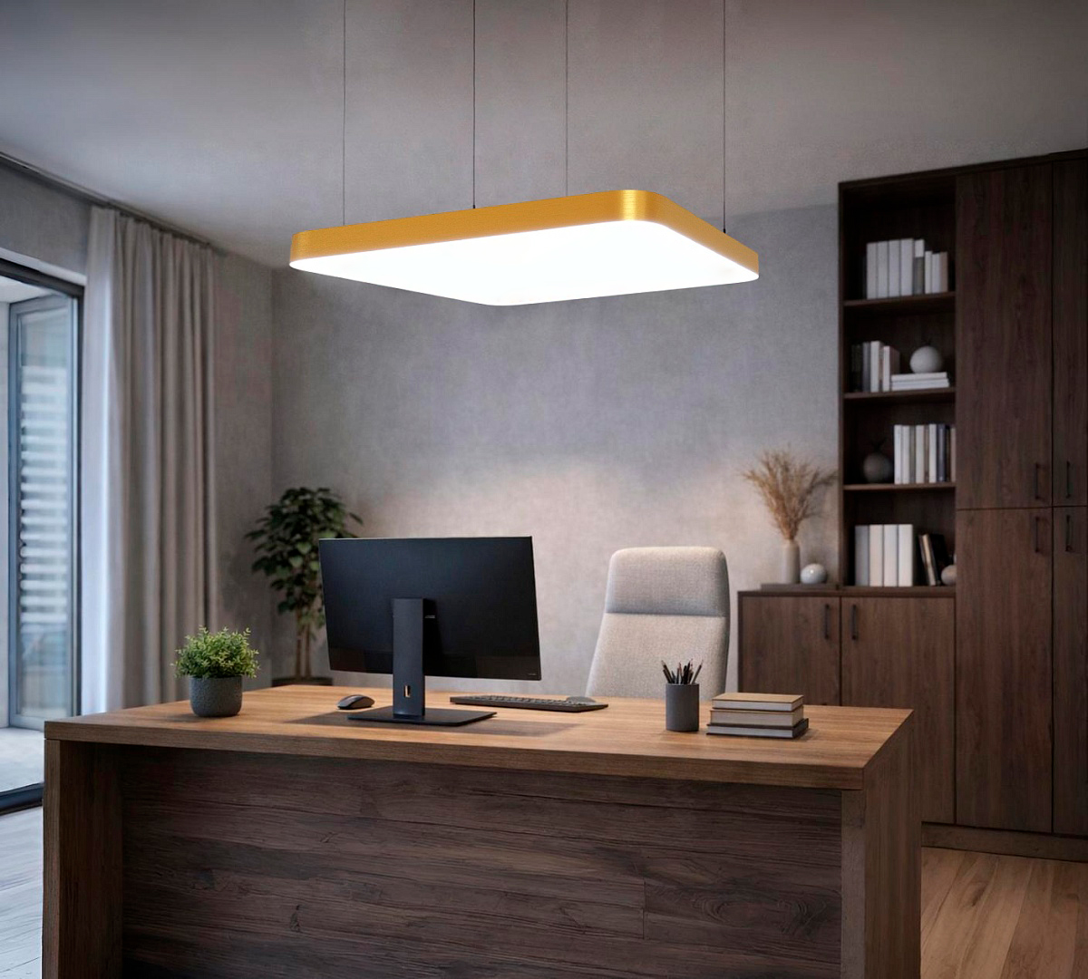 Главная/Каталог/Фигурные светильники/Сплошные/Подвесной светильник MODALINE QUAD F70 (700x700x100 мм, Золото царапанное, 3000K)