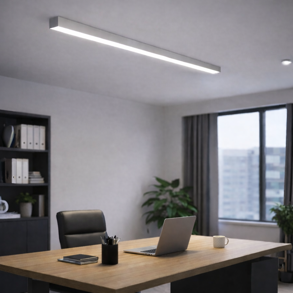 ➤ Также как и в подвесном варианте, данный светильник может быть выполнен в размерах от 1000мм до 4000мм. Доступны различные варианты цветовой температуры, от теплого белого до холодного белого, что позволяет подобрать оптимальный вариант для конкретного помещения и задач освещения, а также различные варианты расцветок корпуса. Из дополнительных опций возможна функция диммирования.