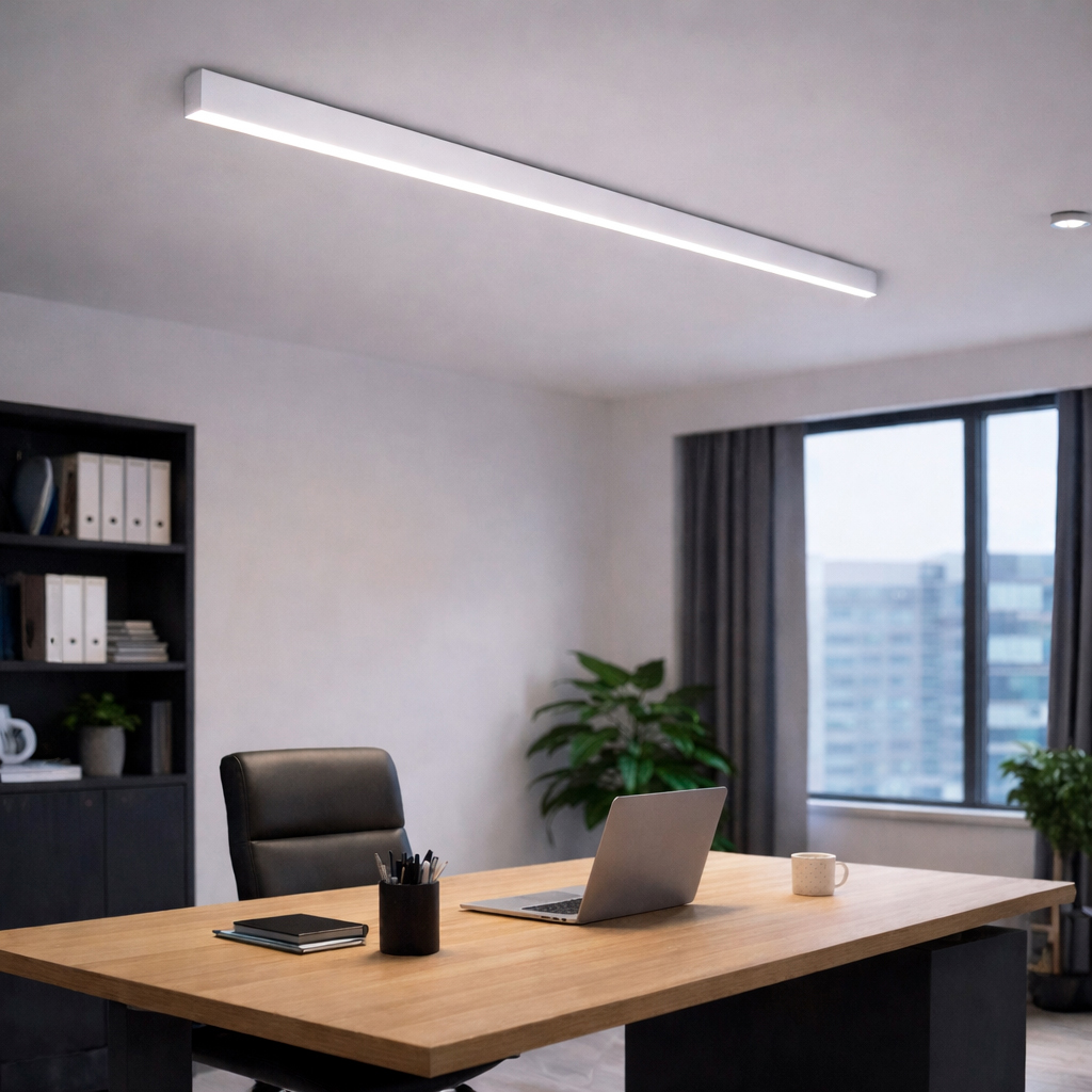 ➤ Также как и в подвесном варианте, данный светильник может быть выполнен в размерах от 1000мм до 4000мм. Доступны различные варианты цветовой температуры, от теплого белого до холодного белого, что позволяет подобрать оптимальный вариант для конкретного помещения и задач освещения, а также различные варианты расцветок корпуса. Из дополнительных опций возможна функция диммирования.