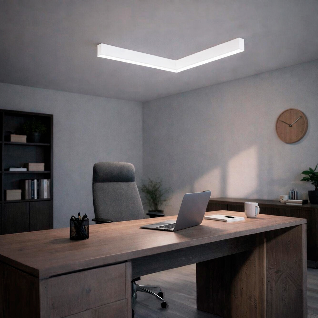Этот светильник разработан в качестве удобного связующего элемента для построения фигур из светильников серии LINE. С помощью него вы можете легко собрать геометрические фигуры с прямыми углами используя стандартные прямые светильники серии LINE соответствующего размера профиля.