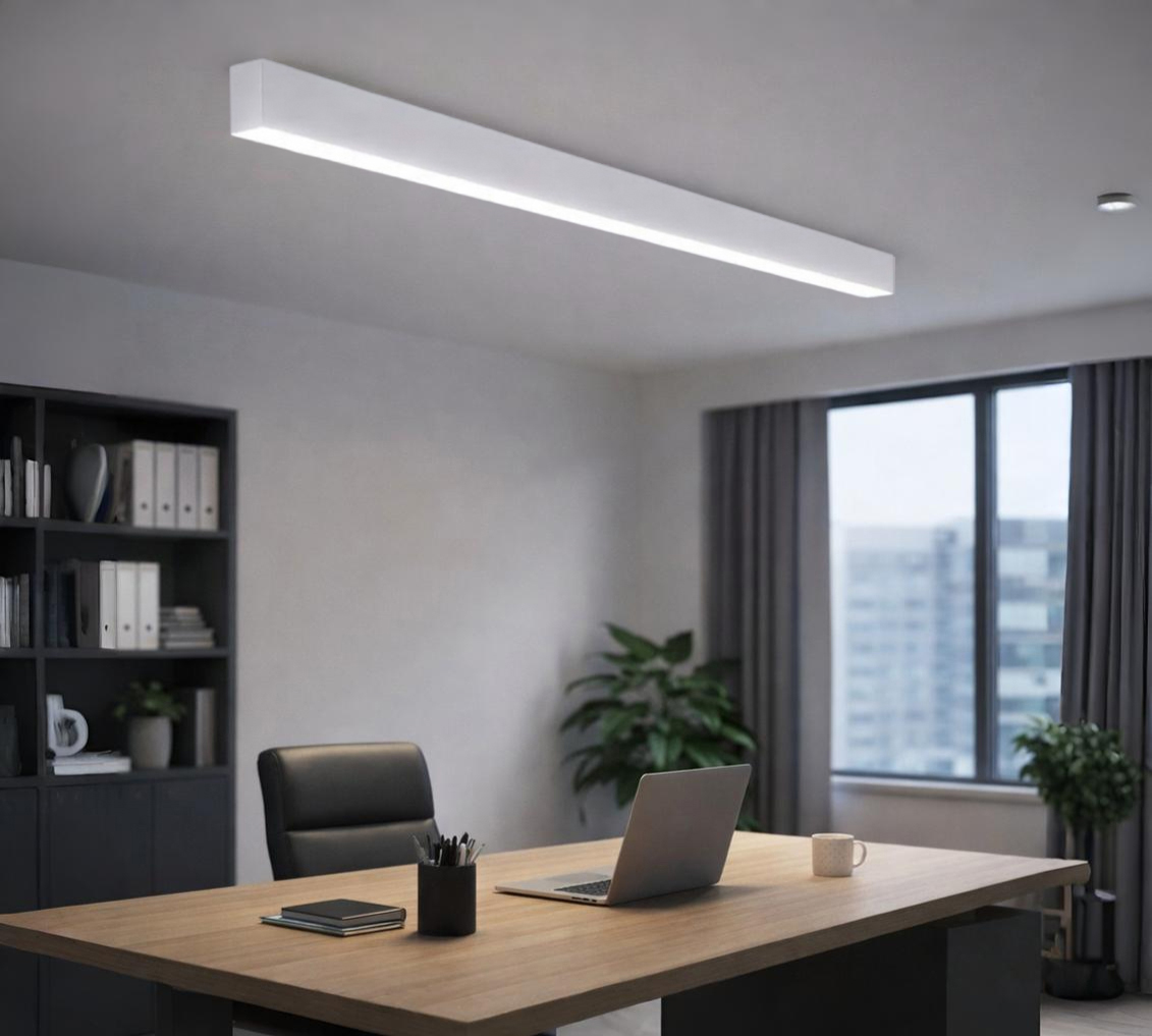 ➤ Также как и в подвесном варианте, данный светильник может быть выполнен в размерах от 1000мм до 4000мм. Доступны различные варианты цветовой температуры, от теплого белого до холодного белого, что позволяет подобрать оптимальный вариант для конкретного помещения и задач освещения, а также различные варианты расцветок корпуса. Из дополнительных опций возможна функция диммирования.