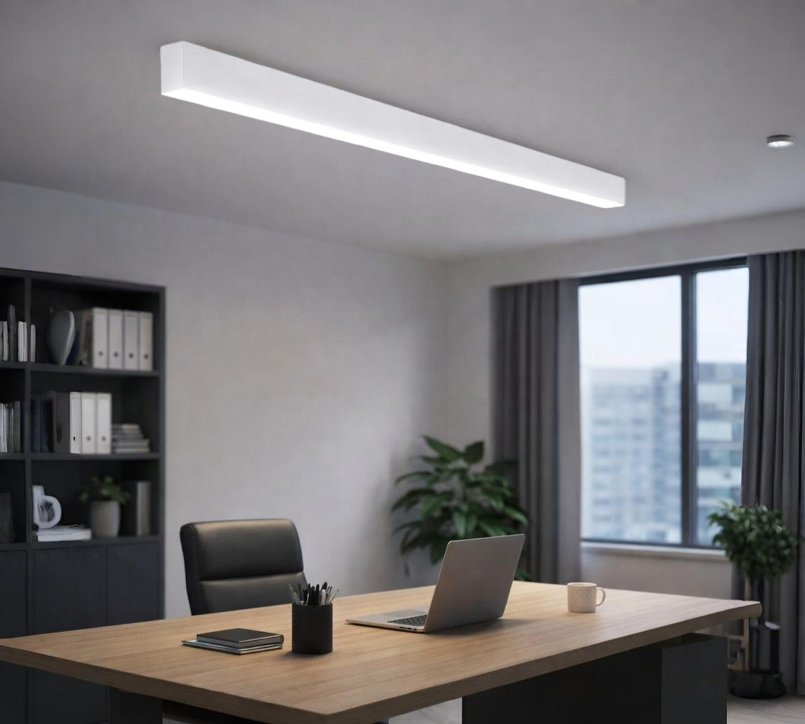 ➤ Также как и в подвесном варианте, данный светильник может быть выполнен в размерах от 1000мм до 4000мм. Доступны различные варианты цветовой температуры, от теплого белого до холодного белого, что позволяет подобрать оптимальный вариант для конкретного помещения и задач освещения, а также различные варианты расцветок корпуса. Из дополнительных опций возможна функция диммирования.