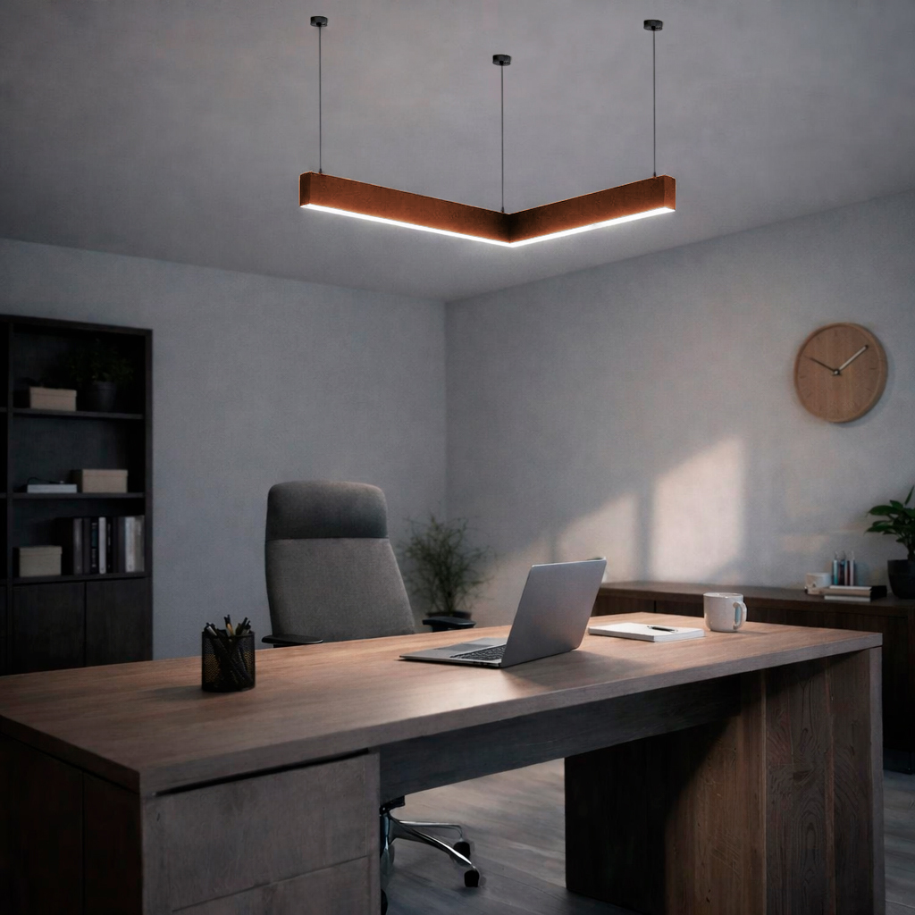 Главная/Каталог/Линейные светильники/Подвесные/Линейный подвесной светильник MODALINE P37 угловой A90 0,5м 22Вт 3000K Коричневый