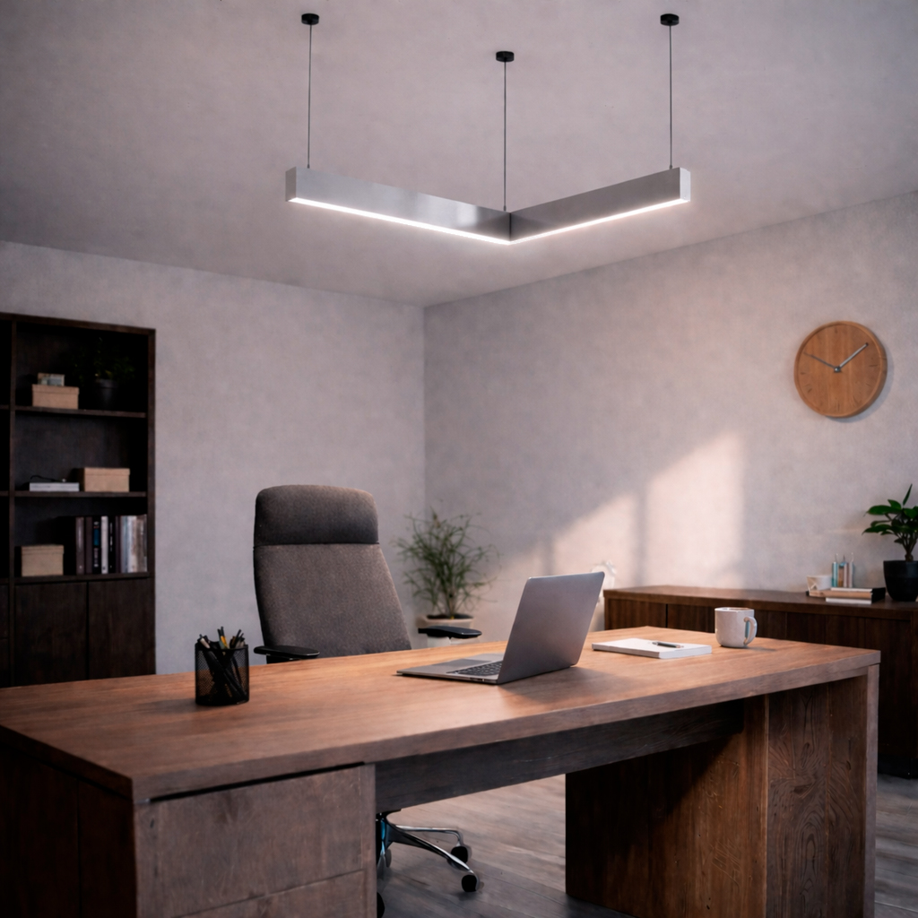Главная/Каталог/Линейные светильники/Подвесные/Линейный подвесной светильник MODALINE P37 угловой A90 1м 44Вт 3000K Алюминий