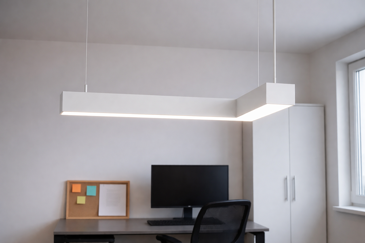 Главная/Каталог/Линейные светильники/Подвесные/Линейный подвесной светильник MODALINE P55 угловой A90 1м 44Вт 6500K Белый