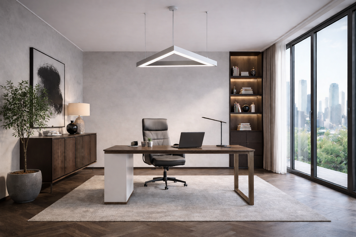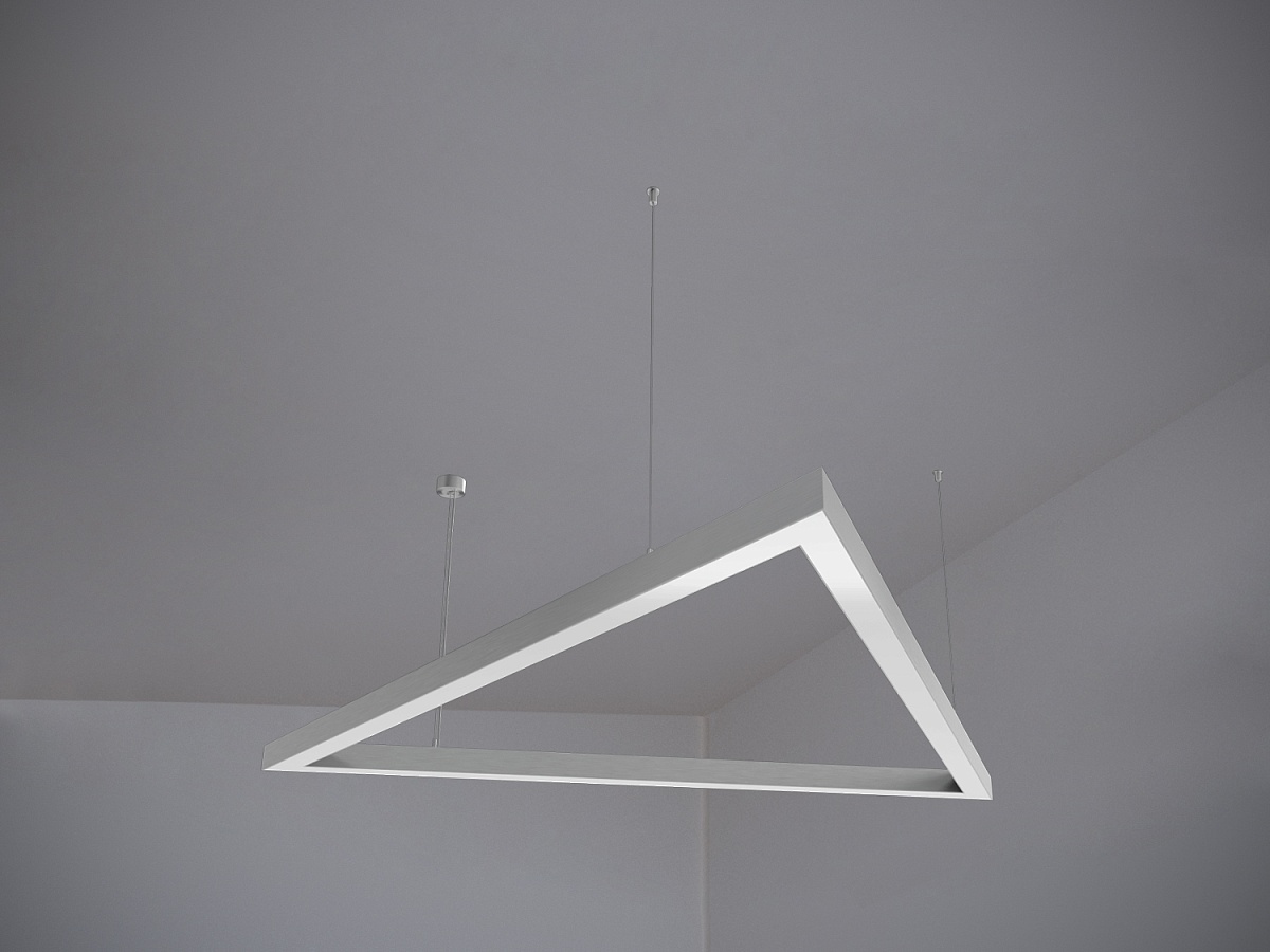Строгая геометрия треугольника в сочетании с минималистичным дизайном корпуса из прочного анодированного алюминия создают неповторимый визуальный эффект и позволяют создавать различные композиции в тандеме с другими светильниками геометрической формы.