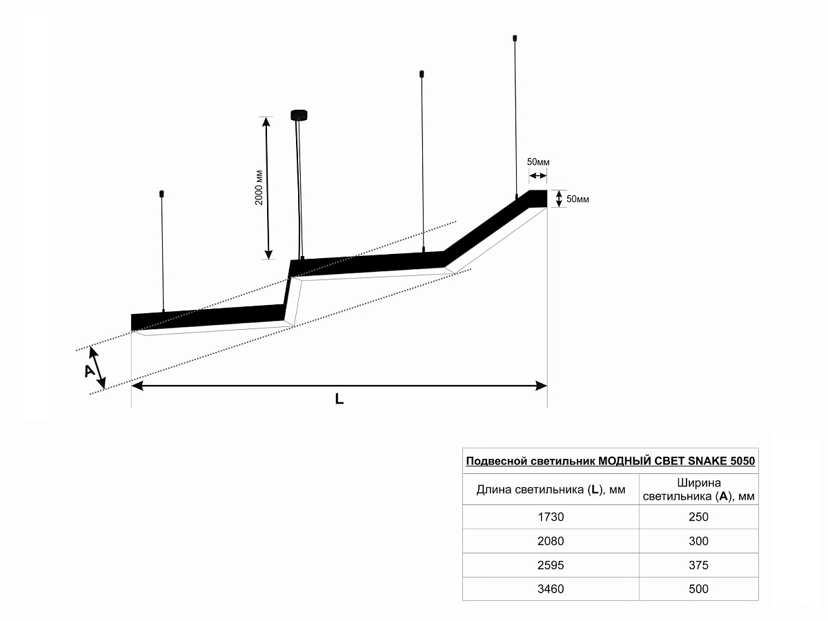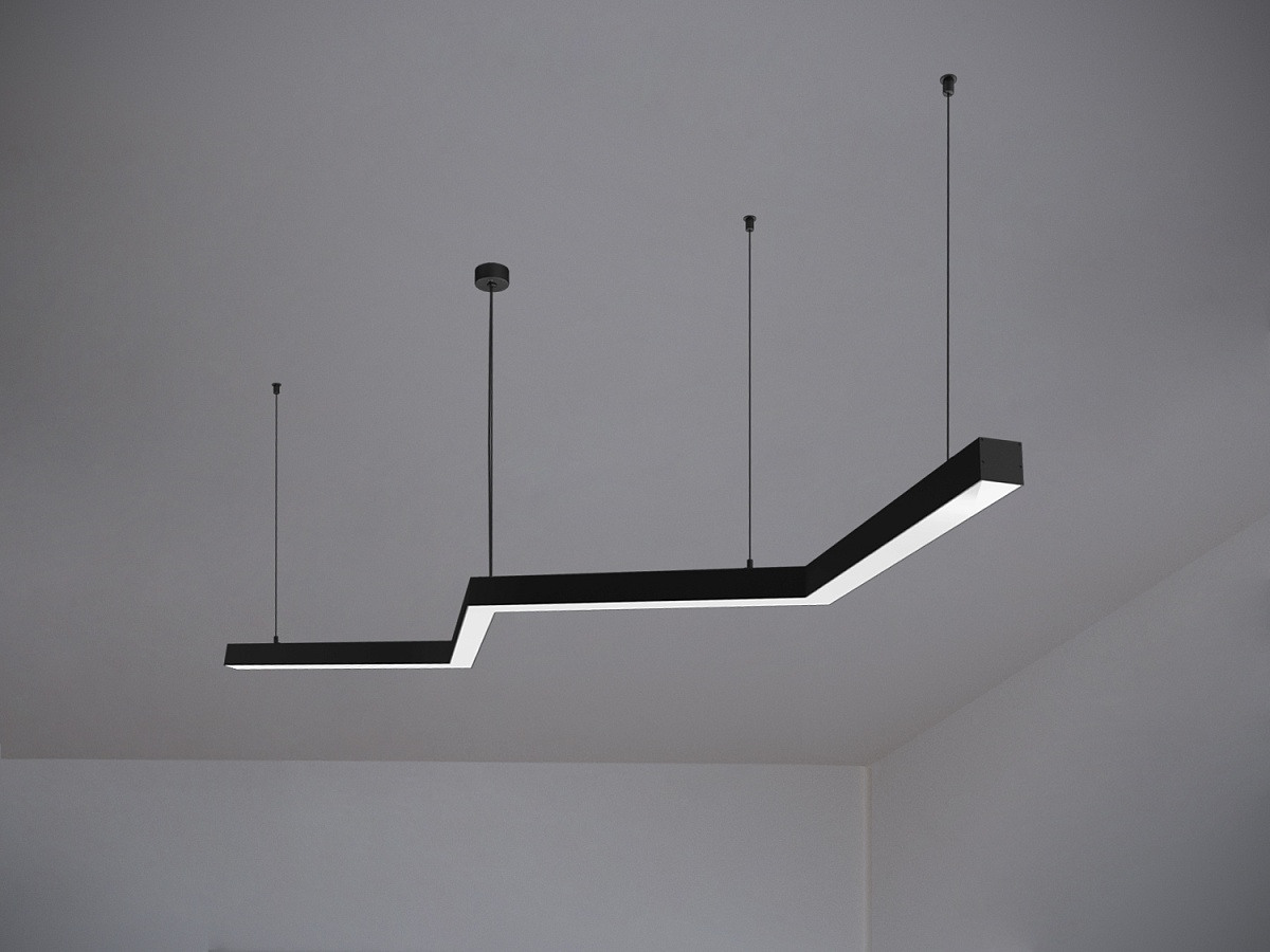Модель подвесного светильника МОДНЫЙ СВЕТ SNAKE состоит из нескольких прямых сегментов, бесшовно соединенных под углом, образуя зигзагообразную конструкцию и создавая динамичный визуальный эффект, притягивающий взгляд.