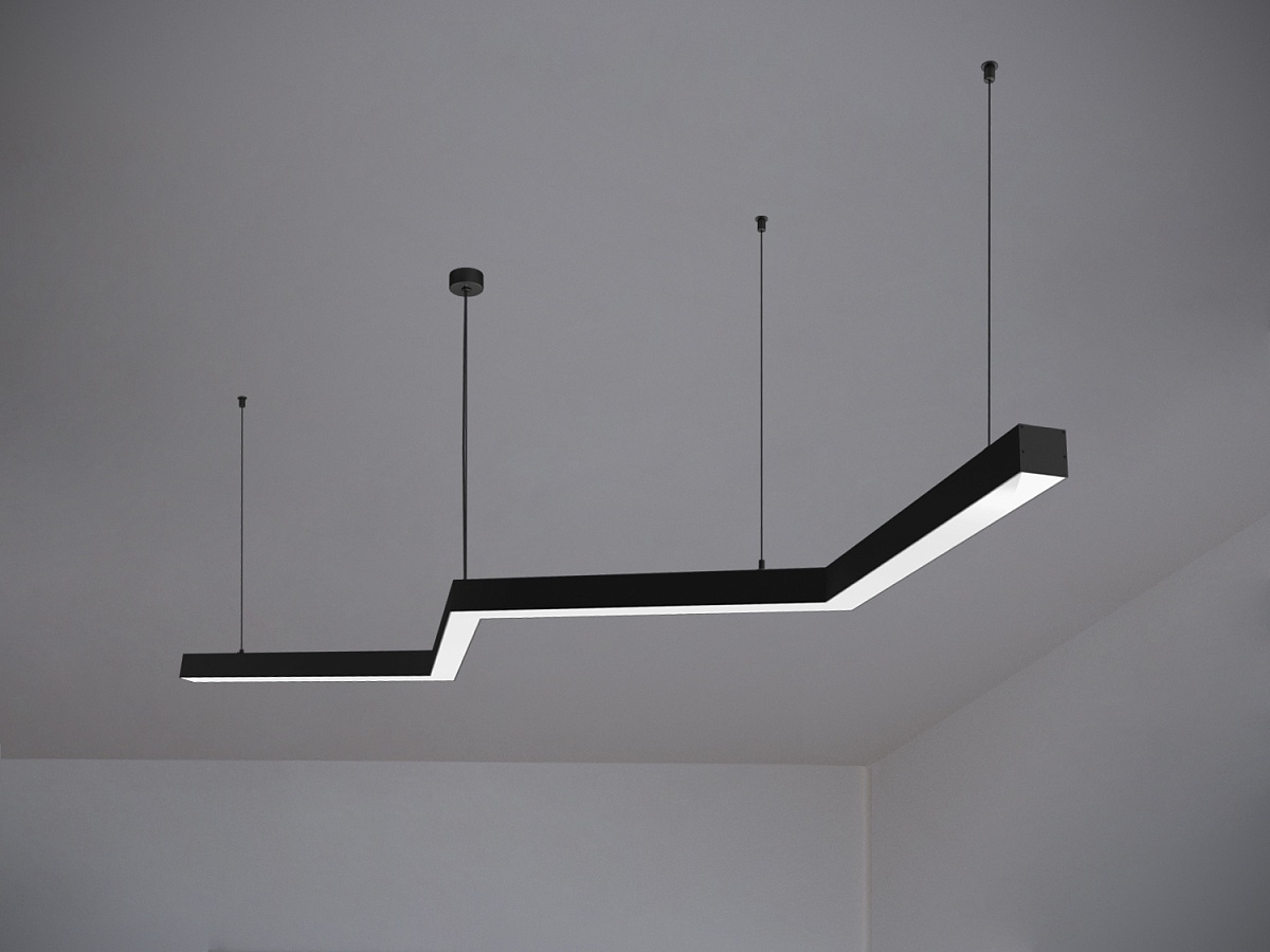Модель подвесного светильника МОДНЫЙ СВЕТ SNAKE состоит из нескольких прямых сегментов, бесшовно соединенных под углом, образуя зигзагообразную конструкцию и создавая динамичный визуальный эффект, притягивающий взгляд.