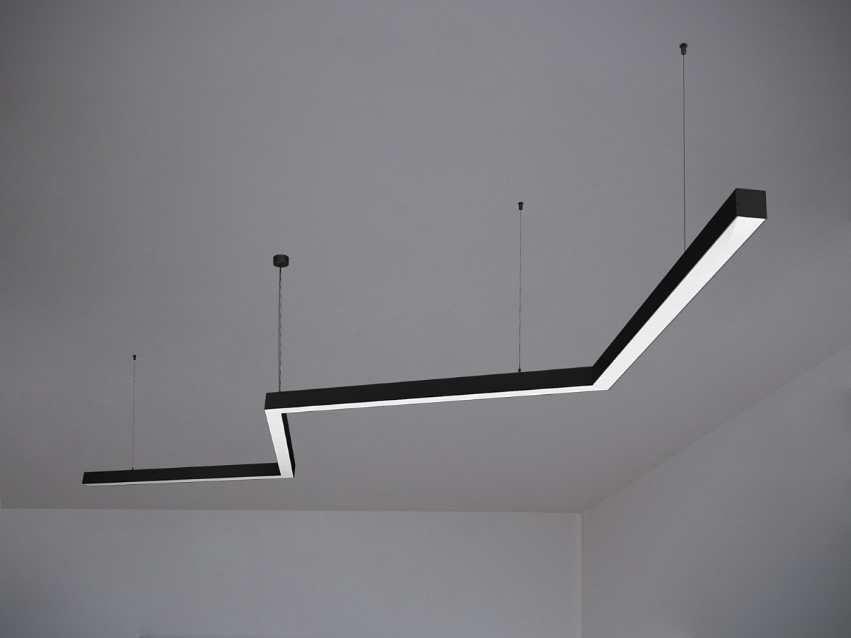 Модель подвесного светильника МОДНЫЙ СВЕТ SNAKE состоит из нескольких прямых сегментов, бесшовно соединенных под углом, образуя зигзагообразную конструкцию и создавая динамичный визуальный эффект, притягивающий взгляд.