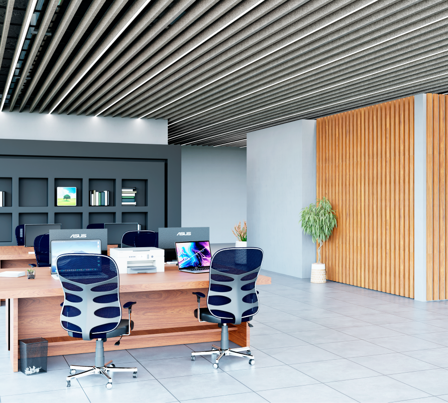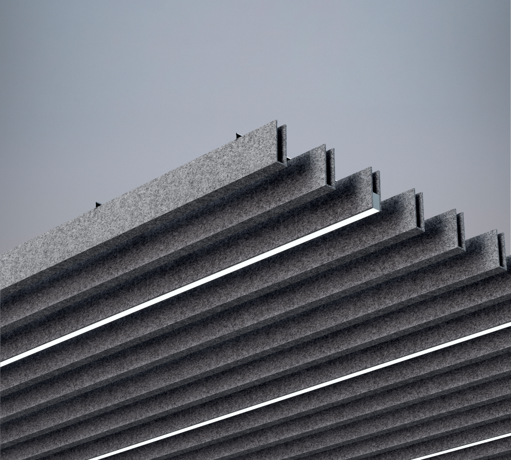 ➤ Акустические баффлы из фетра обеспечивают эффективное поглощение звуковых волн, значительно снижая уровень шума и реверберации в помещении. Данное свойство критически важно для создания оптимальных условий в офисах, конференц-залах, образовательных учреждениях и других общественных зонах, где требуется акустический комфорт.