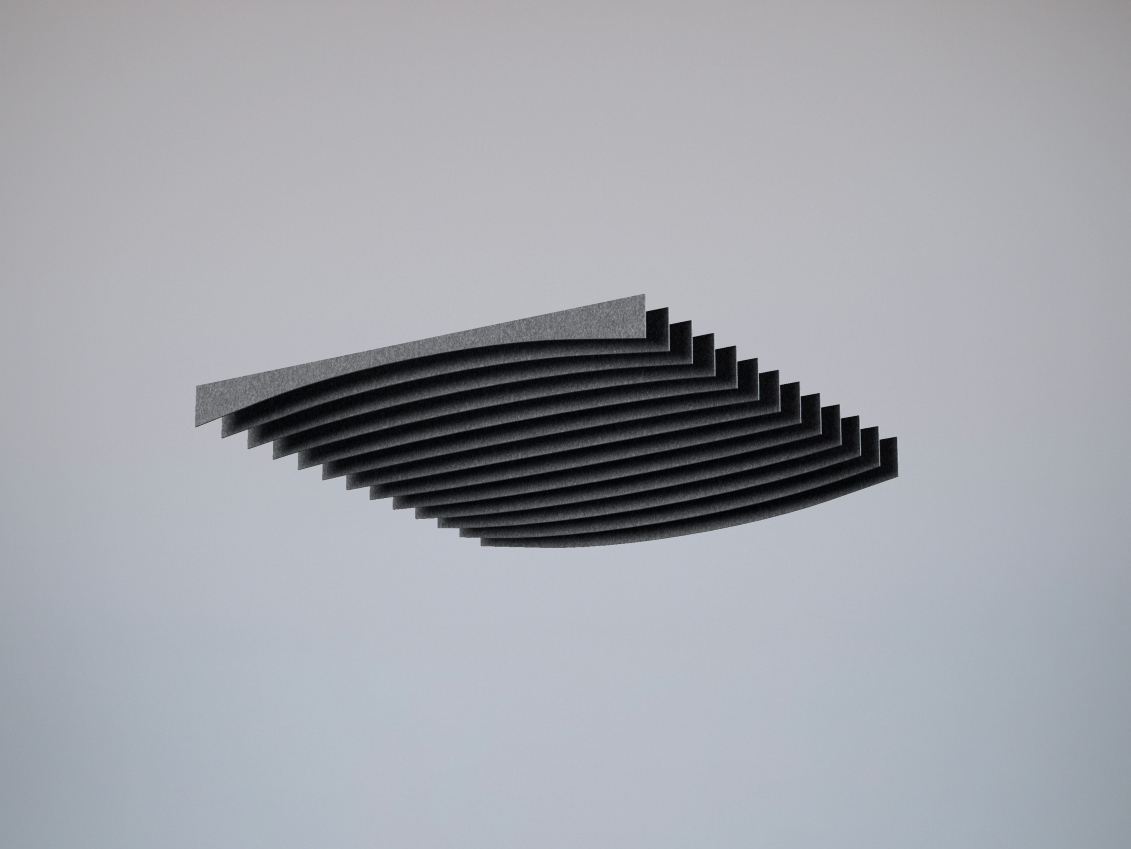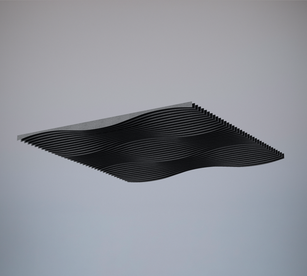 ➤ Модульные фетровые потолки можно располагать в любом нужном направлении, изменяя динамику направления "волн" для создания индивидуальных сценариев.