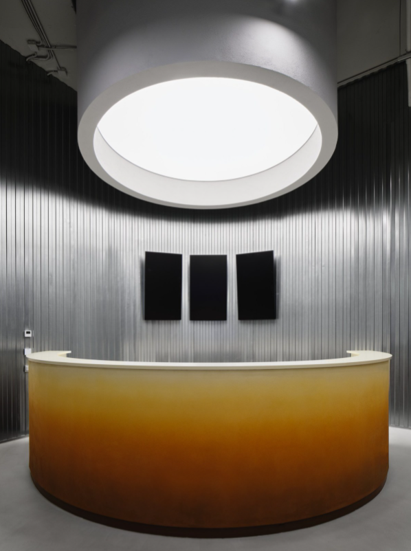 Пространства украшены геометрическими композициями, светильниками-трубами и габаритными единичными экземплярами.