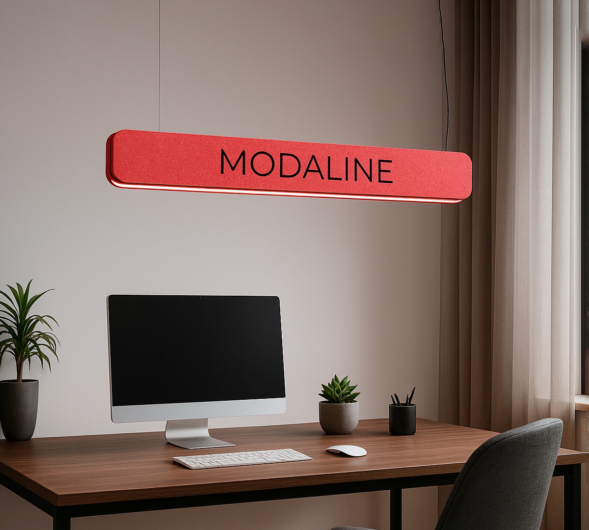 Главная/Каталог/Декоративные светильники/Подвесной светодиодный светильник MODALINE P39 FELT LOGO (1040x56x130 мм, Красный, 4000K)