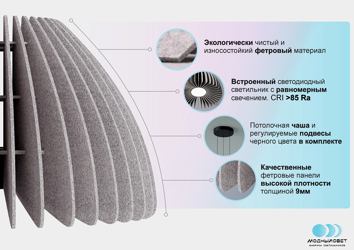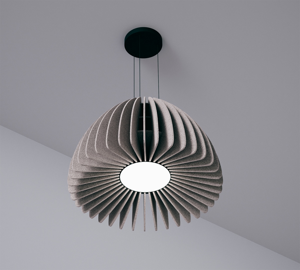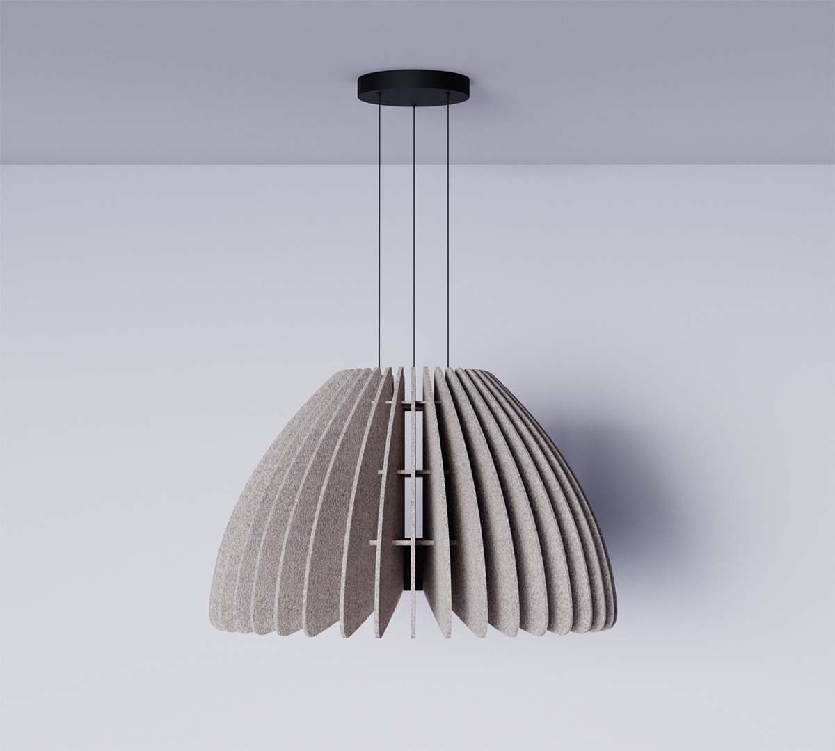 Подвесной светильник MODALINE ROUND BELL90 – это элегантное и функциональное решение для освещения вашего интерьера. Уникальный абажур, собранный вручную из мягких фетровых панелей, создает теплую и приглушенную атмосферу, рассеивая свет мягко и равномерно. Фетр не только приятен на ощупь, но и обладает отличными звукопоглощающими свойствами, что способствует созданию более комфортной акустической среды в помещении.