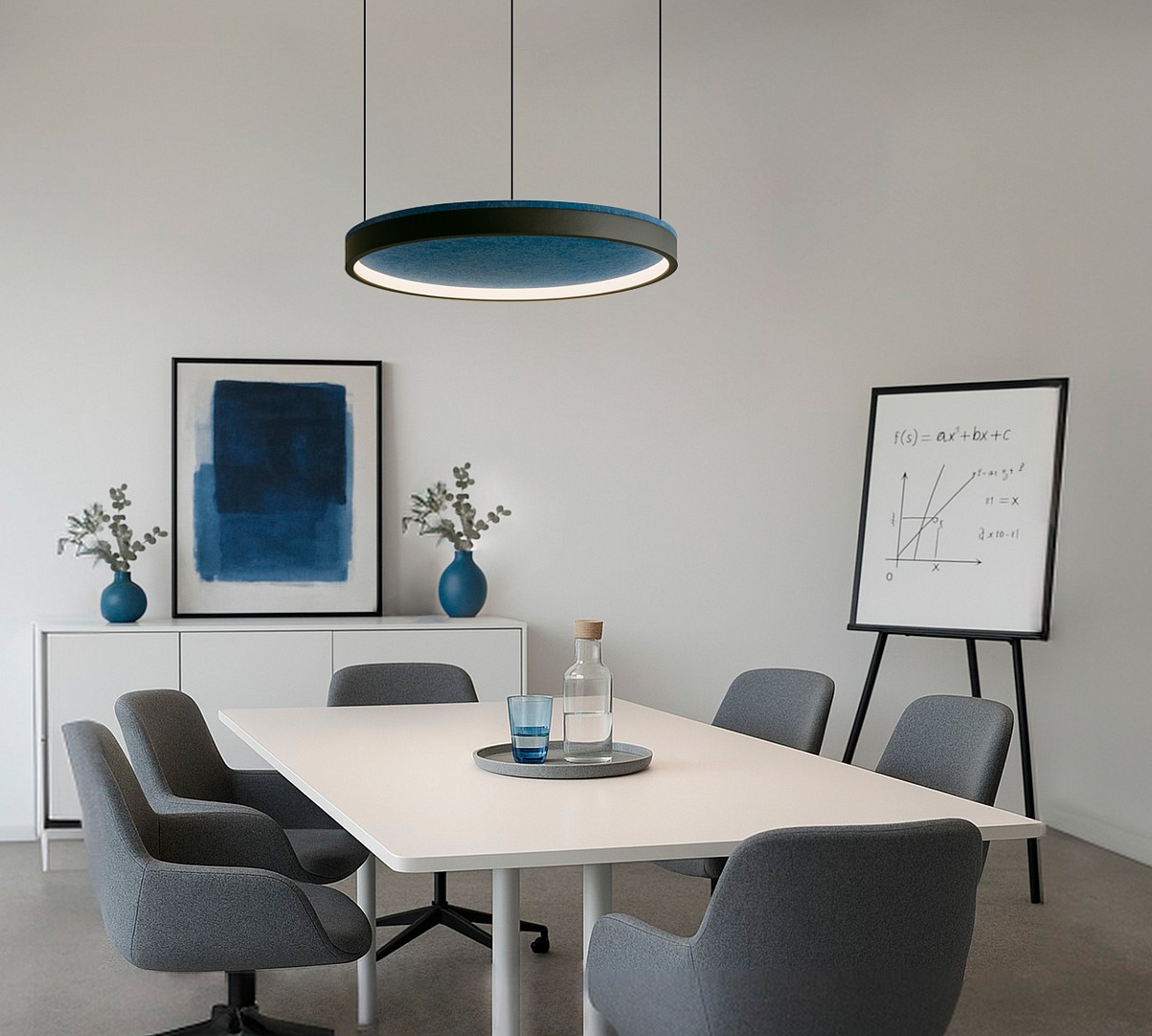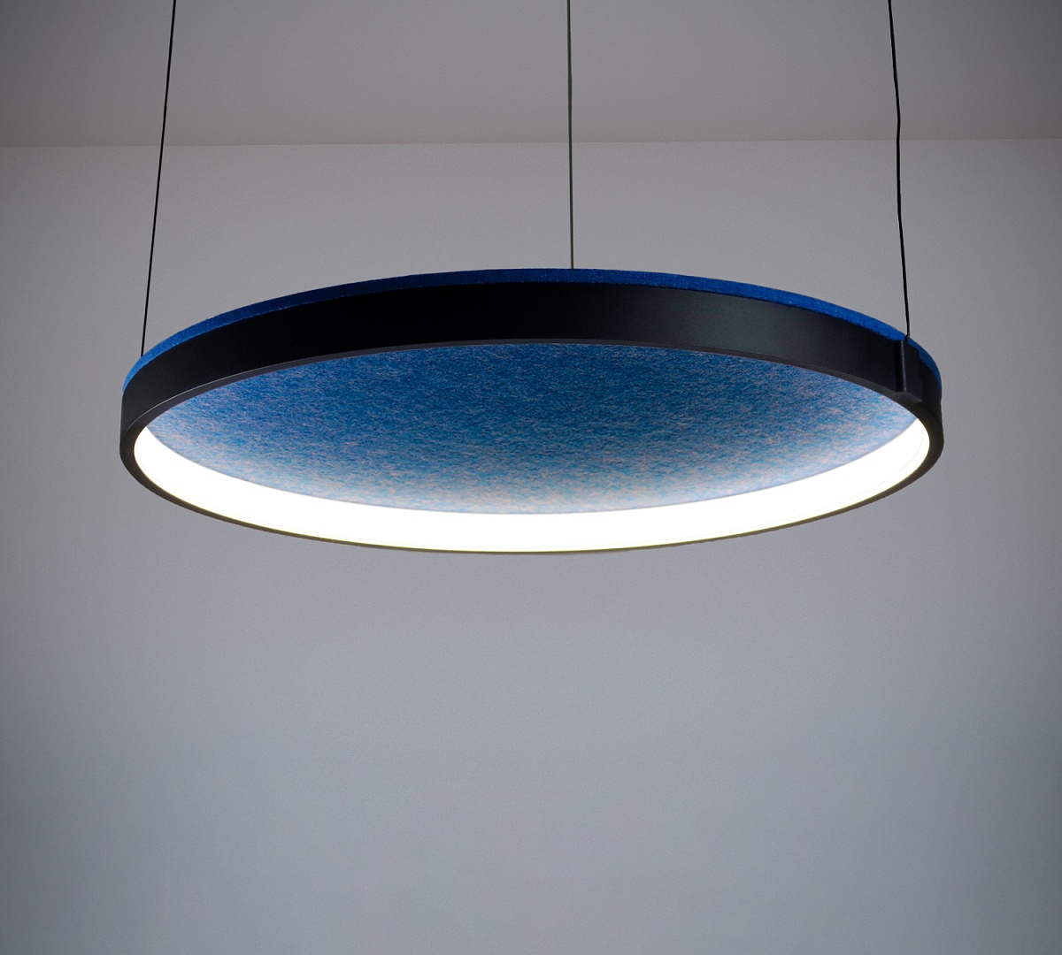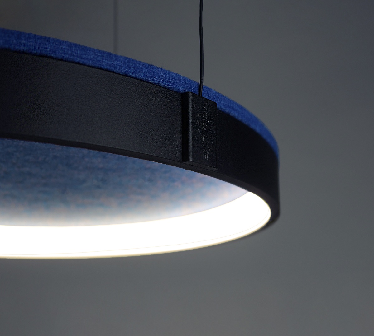 Главная/Каталог/Фигурные светильники/Контурные/Подвесной светодиодный светильник MODALINE ROUND IN80 FELT (800x810x44 мм, Черный матовый / Синий, 4000К)
