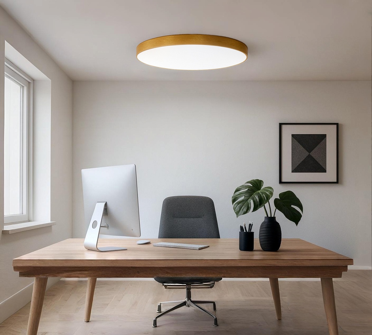 Главная/Каталог/Фигурные светильники/Сплошные/Накладной светильник MODALINE ROUND F90 (900x900x100 мм, Золото царапанное, 3000K)