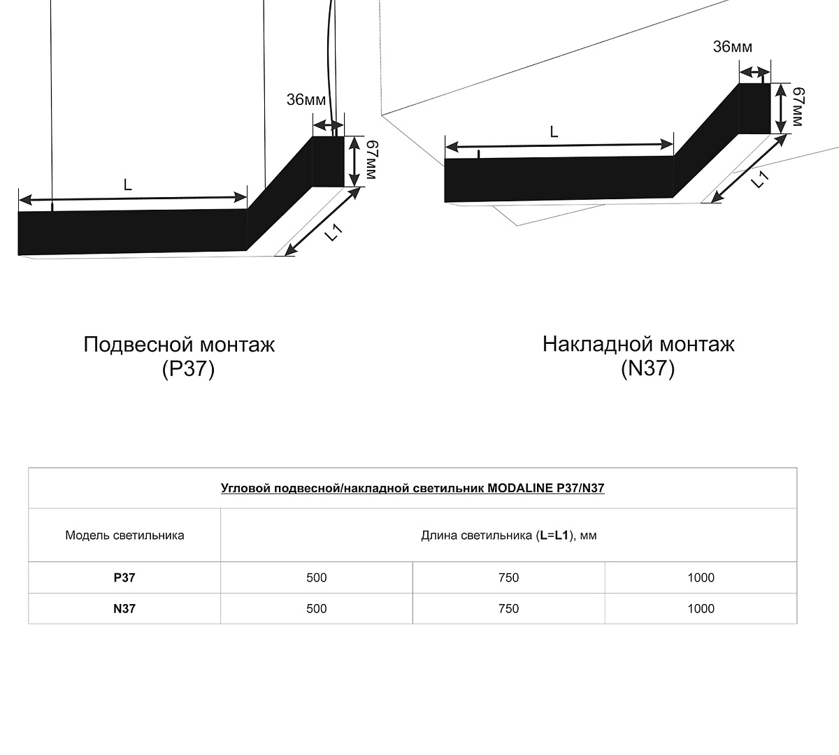 Главная/Каталог/Линейные светильники/Подвесные/Линейный подвесной светильник MODALINE P37 угловой A90 0,5м 22Вт 3000K Черный