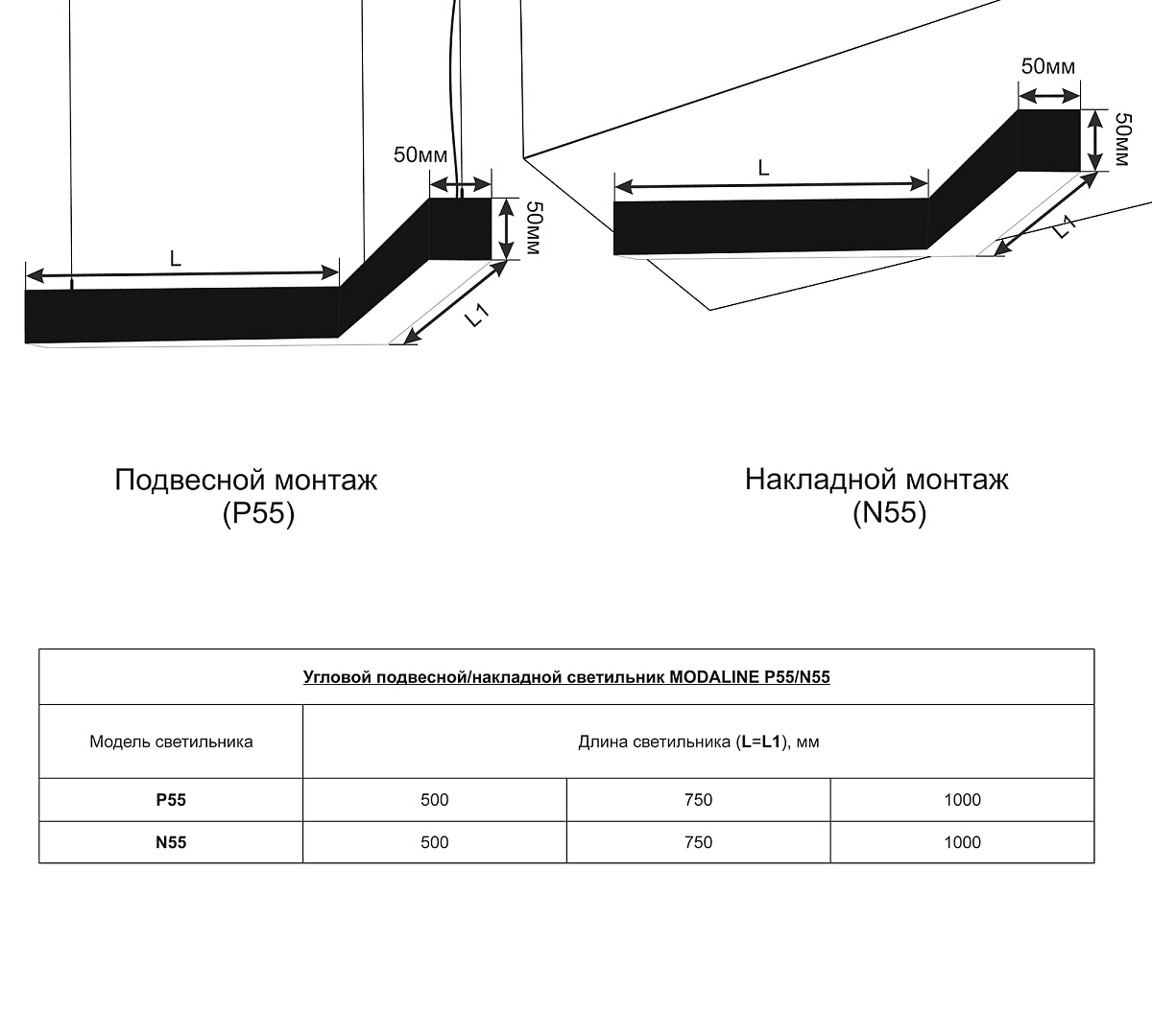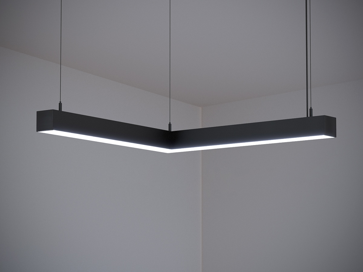 Главная/Каталог/Линейные светильники/Подвесные/Линейный подвесной светильник MODALINE P55 угловой A90 0,5м 22Вт 3000K Черный