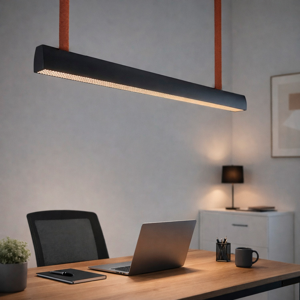 В составе все тот же прочный корпус из алюминия, скругленные грани, антибликовая решетка, обеспечивающая мягкое и направленное распределение света, а подвесы теперь выполнены из токопроводящей текстильной ленты.