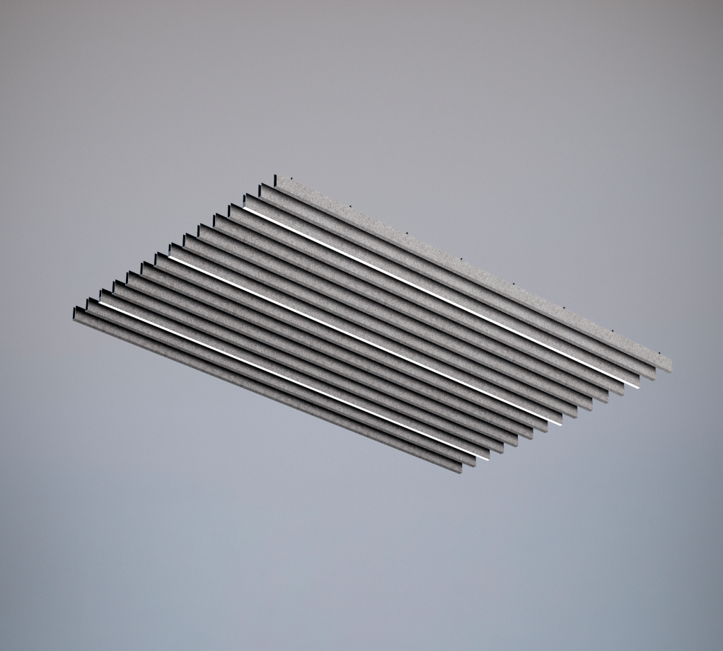 ➤ Фетр, используемый в изготовлении баффлов, обладает высокой прочностью и долговечностью. Материал устойчив к выцветанию, не подвержен деформации и обеспечивает долгий срок службы потолочной системы.