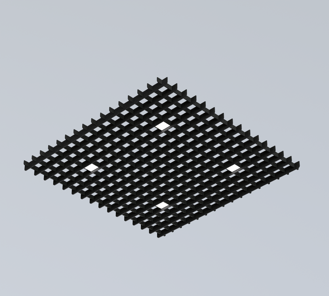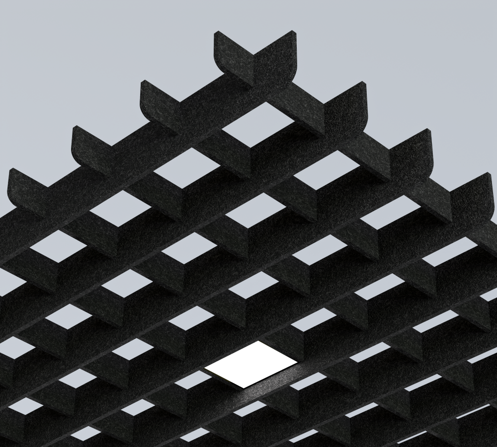 ➤ Фетровый корпус потолка грильято обеспечивает отличные звукоизоляционные свойства, поглощая звуковые волны и снижая уровень шума в помещении. Это особенно актуально для офисных пространств, торговых центров и других общественных зон, где необходимо создать комфортную акустическую среду.