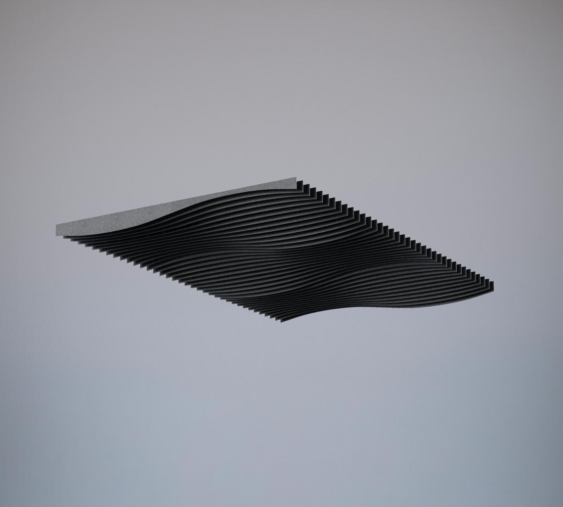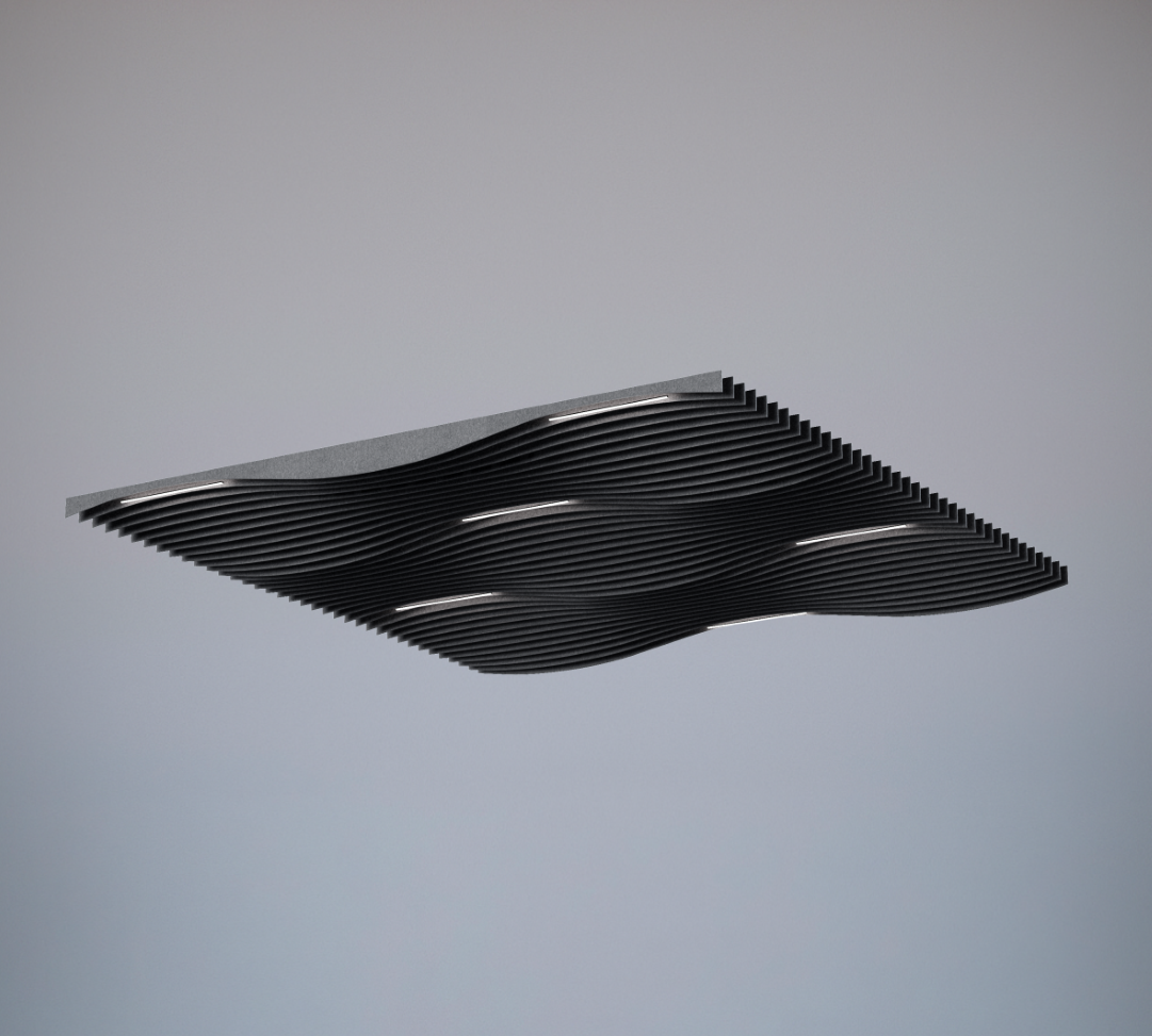 ➤ Модульные фетровые потолки можно располагать в любом нужном направлении, изменяя динамику направления "волн" для создания индивидуальных сценариев.